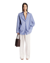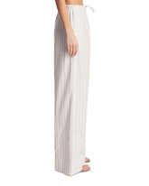 The Row White Hypnosta Cotton Pants. White cotton, striped design, drawstring waist, side pockets, french seams, palazzo design, relaxed fit. Alisha is 175 cm and she is wearing size 4.