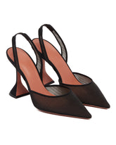 Amina Muaddi Black Begum Pumps. Black fabric upper, pointed toe, slingback design, logoed leather sole. Tone-on-tone covered hourglass heel. Heel Height: 9.5 cm