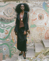 Per la collezione SS 2024, Nine-Night, che prende il nome da una tradizione funeraria praticata nei Caraibi, la designer ha collaborato con l’artista giamaicana Laura Facey per presentare top crochet, pantaloni relaxed, gonne midi a pieghe e dettagli all’uncinetto. Diotima amplia la definizione di sostenibilità producendo solo due collezioni all’anno, tutte su ordinazione e realizzate con materiali sostenibili.