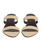 The Row Beige Double Strap Sandals. Beige leather, open round toe, double upper straps, open heel, low wide heel, logoed insole, leather sole.
