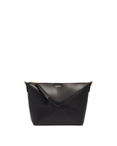 Loewe White Puzzle Fold Pouch. White leather, adjustable and removable shoulder strap, zip closure, and suede leather lining. Embossed silver logo, silver hardware. Size (cm): 23X15X6