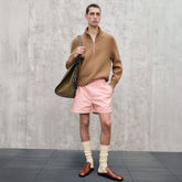 Drawing inspiration from the nostalgia of the '80s and embroidery referencing the film *Splash* with Daryl Hannah, Bottega Veneta pays tribute to Gaetano Pesce, the artist and collaborator of the Maison for the past three years. "I've read many books on elegance and the sense of style. I've also revisited the films of Anthony Bourdain. There are many parallels between the pleasure of cooking and the joy of adding details to a silhouette. What I wanted to achieve this season was something both pragmatic and hedonistic. I took everything I love. It was like in Italy: when the ingredients are good, there's no need to complicate things." The Pre-Spring 25 collection creates an original wardrobe, with numerous connections between men's and women's fashion – colorful looks, experiments with weaving, and extreme silhouettes, whether long, structured, or the unexpected mini. Blazy describes it, quoting G. Bruce Boyer's *True Style*: "Elegance is a dialogue between innovation, tradition, and personal taste."