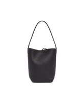 The Row Midnight Blue Small N/S Park Tote Bag. Blue leather, internal hook closure and flat handle, contrasting suede lining, logo detail. Size (cm): 13X21X12