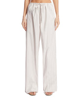 The Row White Hypnosta Cotton Pants. White cotton, striped design, drawstring waist, side pockets, french seams, palazzo design, relaxed fit. Alisha is 175 cm and she is wearing size 4.