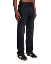 Amiri Black Straight-Leg Jeans. Black cotton denim, regular waist, front button and zip closure, belt loops. Straight leg, logo patch on the back, regular fit. Yoan is 185 cm and he is wearing size 31.