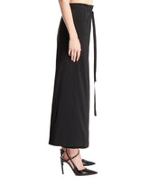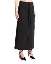 The Row Black Voice Skirt. Crafted in a black cotton and tech fabric blend. Tablier design, long self-tie strings fastening, straight hem. Greeta is 172 cm and she is wearing size S.