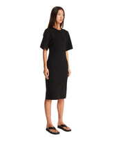 Toteme Black Viscose Dress. Black viscose blend, crew neckline, short sleeves, midi length. Regular fit. Isla is 176 cm and she is wearing size S.