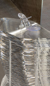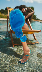 Amina Muaddi unveils Brito, the new Summer capsule transcending footwear borders, morphing into sculptures that fuse seamlessly as an art-fashion binary. One-piece plexiglass Brito slippers are the demonstration of Muaddi’s deep commitment to innovation. The sophisticated silhouette is the fruit of two years of research and development, homing in on and flaunting the brand’s iconic minimalism and fascination with fine-hewn forms. Six colors to choose from: Transparent, Orange, Azur, Lotus Pink and Fluo Green. All inspired by the beauty and effervescence of Ibiza, the Spanish isle that played host to Dario Catellani’s photo shoot of Amina Muaddi ad-campaign starring Tina Kunakey. The Brito, available in store and online, was launched with an exclusive cocktail kickoff at Antonia Sant'Andrea.