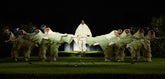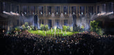 An exclusive event and installation at Antonia Sant’Andrea that spilled out into the awe-inspiring piazza del Quadrilatero of Portrait Milano, unveiled the new blockbuster Moncler x Pharrell Williams collection one day ahead of the official launch. The display, which runs through Sept. 27, kicked off with a live performance featuring ballet dancers, choral singers, a DJ set and the guest star presence of Pharrell Williams himself. The installation, a profusion of trailing greenery countered by steely fixtures perfectly captures the dual soul of the collection: city-ready and perfect for outdoor with a focus on refinement, craftsmanship, and expertise. It revolves around the concept of glamping. The clothes are designed to transition smoothly from outdoor adventures to metropolitan chaos with a balance of soft fluidity and architectural linearity. This being Pharrell, the vest is a key item, interpreted in three-dimensional diamond quilting and meant to be layered. Transformability is also key with zippers that allow long trousers to turn into shorts, a duvet blanket that doubles as a cape, and unzippable sleeves that transform a jacket into a utilitarian fisherman's vest.