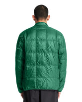 Moncler Genius x FRGMT Green Lightweight Down Jacket with Logo. Green technical fabric, down and feather filling, long sleeves, crew neck. Quilted design, front button closure, straight hem. Contrasting logo lettering on the left sleeve, double logo on the shoulder. Regular fit. Diogo is 186 cm and he is wearing size IV.