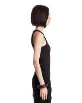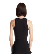 Alaia Black Ribbed Top. White cotton blend, sleeveless design, crew neck, ribbed texture, fitted silhouette. Alicia is 173 cm and she is wearing size 36.