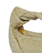 Bottega Veneta Green Mini Jodie Leather Bag. Green leather, iconic Intrecciato weaving, integrated handle with signature knot, top zip closure, single compartment, gold-tone hardware, leather lining. Size (cm): 15X20X5