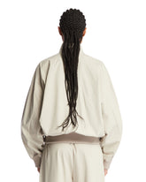 Fear Of God Beige Bomber Jacket with Zipper. Made of beige technical fabric, featuring a stand-up collar and long sleeves. It has a front zip closure with contrast zipper, dropped shoulders, side pockets, and ribbed tone-on-tone hem and cuffs. Regular fit. Aline is 180 cm and she is wearing size S.