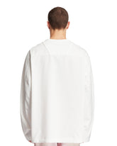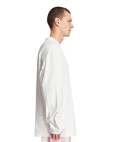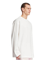 Juun.J White Long Sleeve T-Shirt. White cotton, long sleeves, round neckline, dropped shoulders, straight hem, relaxed fit. Thom is 185 cm and he is wearing size L.