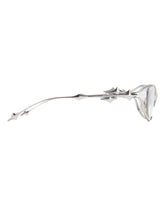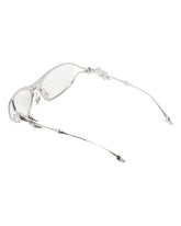 Occhiali Da Sole Kro 02 Argentati di Gentle Monster. Montatura in metallo argentato, lenti trasparenti, silhouette squadrata. Astine con il simbolo distintivo della collezione Bold. Lenti con protezione della luce blu.